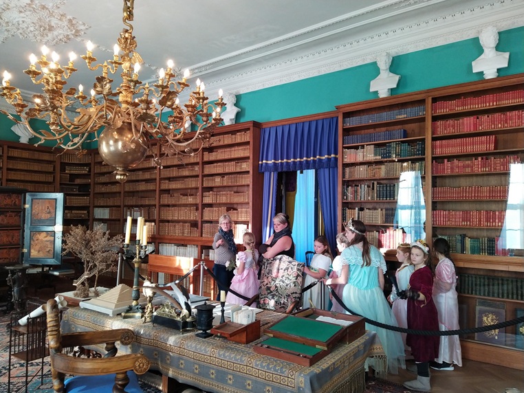 Anschließend wandelten die Cat Girls in Prinzessinnenkleidern durch das Branitzer Schloss und erfuhren viele interessante Dinge aus dem Leben Fürst Pücklers. Im Cavalierhaus schrieben sie anschließend mit Feder und Tinte, so wie es Pückler einst tat.
